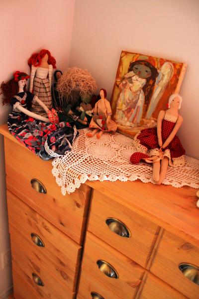 Îmi plac în noua mea casă tablourile Eudochiei Zavtur. Au făcut o cale lungă până aici. Dar au ajuns întegi şi nevătămate. Fapt pentru care le mulţumesc celor de la DHL. Încă ne mai chinuim să le facem rame la toate ca să le agaţăm pe pereţi. Dar îngerul primit în dar de la Eudochia deja se împacă cu mobila din lemn curat, păpuşile mele preferate şi dantele aduse de acasă. Arată fix ca în visele despre noua mea casă.