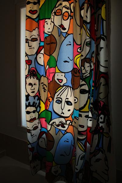 Îmi place draperia din baie. Pentru că e lucrată de maică-mea şi pentru că are un print creat pentru Ikea, de vreun student şmecher de la vreun colegiu de Arte.Casa am luat-o goală, fără mobilă, fără electrocasnice, fără draperii. Dar la draperia din baie am ajuns în ultimul rând. Şi nu regret. Am ochit stofa asta din o sută altele.