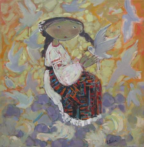 Ghenadie filmează, pictează şi crează diverse instalaţii din mămăligă. Am găsit pe net ca să vă arăt şi un tablou de-al său. Îmi este simpatică şi tânăra Anna Constantinova. Lucrările sale îmi place să le admir de la distanţă. Deschideţi linkul ca să înţelegeţi de ce. Dar Anna are un stil splendid. Uşor inspirat de la Dali, dar foarte personal în acelaşi timp.Am aflat recent că Anna este nepoata lui Glebus Sainciuc şi m-am încîntat. Anna nu afişează această legătură de rudenie. Cred că e bine şi cu aceste mici secrete de familie. Eu am ales cea mai puţin reprezentativă lucrare a Annei.