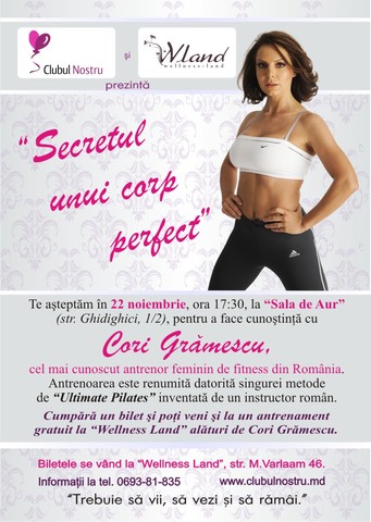Am cîteva luni de când m-am lăsat de fumat. N-am avut nici un stres, dar organismul meu, pe semne, l-a avut. S-a lăsat simţit prin cele 6-7 kilograme cu care intru în această iarnă.Lumea îmi zice că aşa îmi şade mai bine. Eu ştiu cât de mult trebuie să ascult lumea. Nu sunt nici paranoică, nici disperată din cauza noilor mele “prietene” atunci când văd ce-mi arată cântarul din baie. Dar înţeleg că nu-i chiar bine să las baltă aceste kilograme. Am reluat yoga. Mă ajută. Mai puţin în lupta cu kilogramele. Aş vrea să merg la o sală pentru o oră de cardio pe zi. Încă nu mi-am făcut timp. Până una alta, încerc să vă asigur că greautatea în plus nu ocoleşte pe nimeni şi nici nu pleacă, nealungată. Pentru a scăpa de greutate, treuie în primul rând mişcare. Cât mai multă. Şi cât mai plăcută. Nu cred în sportul care generează iritare şi stres. Dar cred în distracţia activă care te mai şi ajută să te menţii. Doina Cernavca are un fetiş cu slăbitul. Probabil de asta are şi succese mari. Probabil de asta vrea să aibă succese şi mai mari, invitând în Moldova oameni care o interesează. Aştept cu nerăbdare să o cunosc pe cea mai cunoscută antrenoare de fitness din România, Cori Grămescu.Ba mai mult,voi merge şi la antrenament.Cu ce oare se mai mânîncă Ultimate Pilates?
