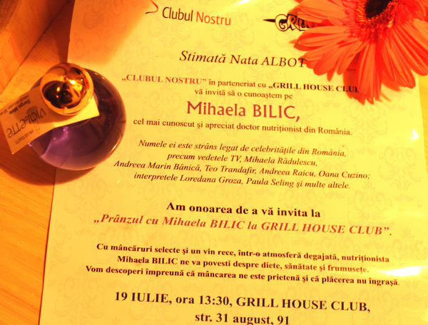 Dragă Doina, iartă-mă pentru lipsă de timp şi pentru slogane patriotice, dar mi se pare că cel mai bun PR pentru evenimentul tău este chiar această invitaţie. Aş da orice să fiu prezentă la această cină, unde un om ,despre care se vorbeşte bine în târg, va veni să mă convingă că tot ce e plăcut e şi sănătos. Eu sunt o hedonistă. Pentru malioşi, deschideţi DEXul.